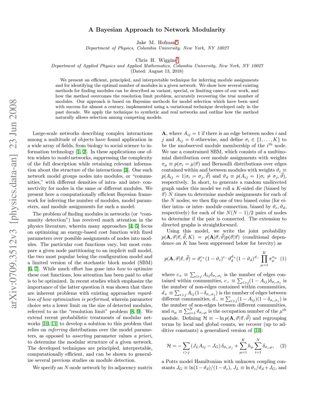 We present an efficient, principled, and interpretable technique for inferring module assignments and for identifying the optimal number of modules in a given network. We show how several existing methods for finding modules can be described as variant, special, or limiting cases of our work, and how the method overcomes the resolution limit problem, accurately recovering the true number of modules. Our approach is based on Bayesian methods for model selection which have been used with success for almost a century, implemented using a variational technique developed only in the past decade. We apply the technique to synthetic and real networks and outline how the method naturally allows selection among competing models.