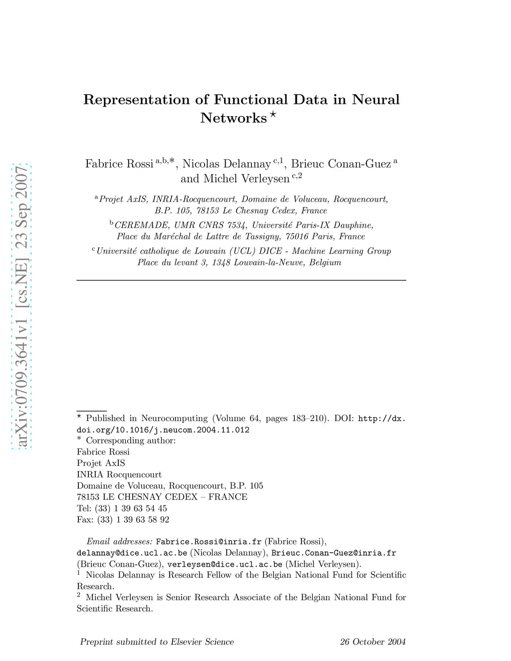 Functional Data Analysis (FDA) is an extension of traditional data analysis to functional data, for example spectra, temporal series, spatio-temporal images, gesture recognition data, etc. Functional data are rarely known in practice; usually a regular or irregular sampling is known. For this reason, some processing is needed in order to benefit from the smooth character of functional data in the analysis methods. This paper shows how to extend the Radial-Basis Function Networks (RBFN) and Multi-Layer Perceptron (MLP) models to functional data inputs, in particular when the latter are known through lists of input-output pairs. Various possibilities for functional processing are discussed, including the projection on smooth bases, Functional Principal Component Analysis, functional centering and reduction, and the use of differential operators. It is shown how to incorporate these functional processing into the RBFN and MLP models. The functional approach is illustrated on a benchmark of spectrometric data analysis.