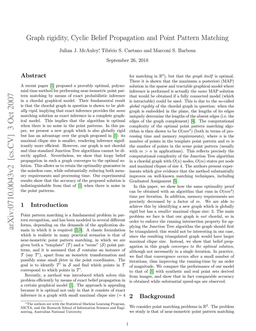 Graph rigidity, Cyclic Belief Propagation and Point Pattern Matching
