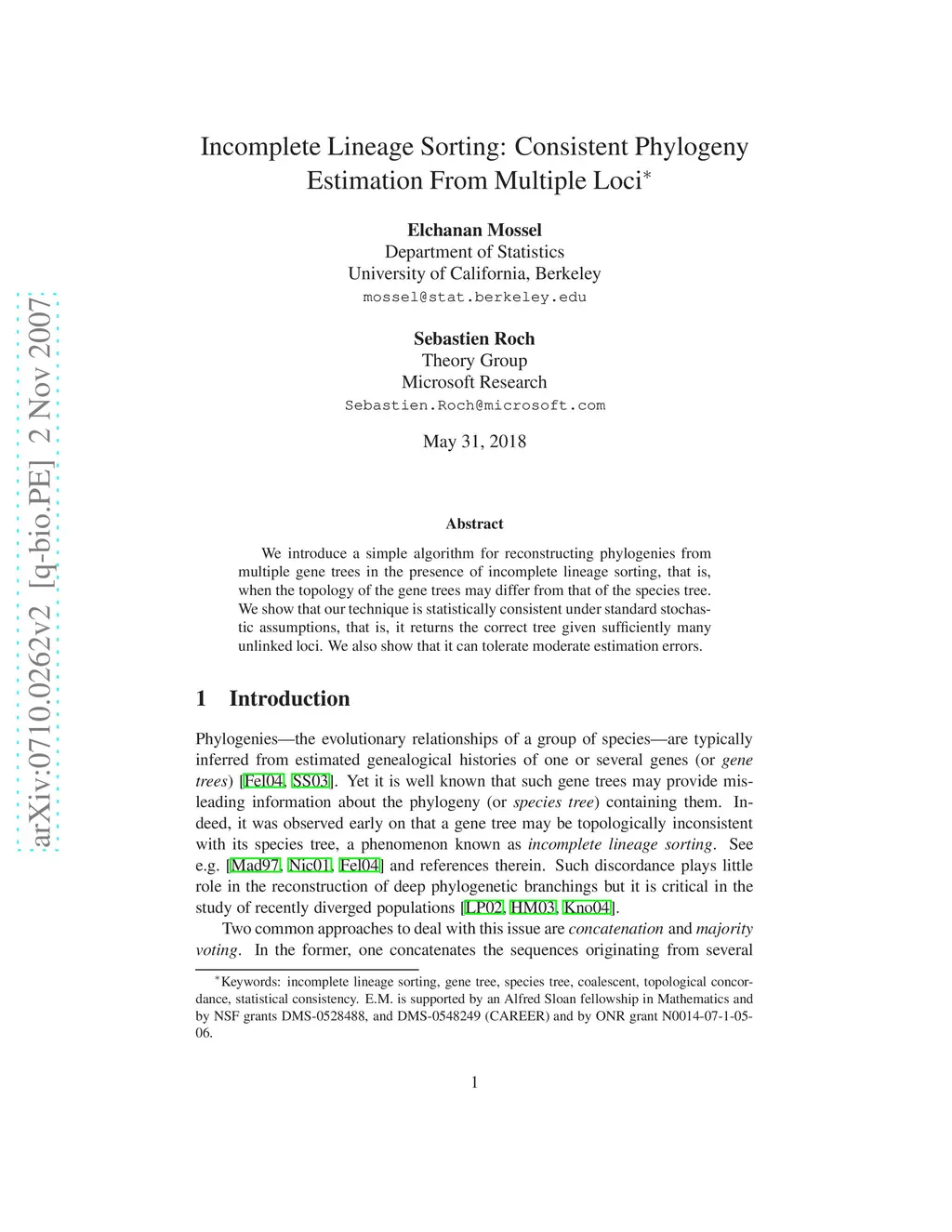 Incomplete Lineage Sorting: Consistent Phylogeny Estimation From
