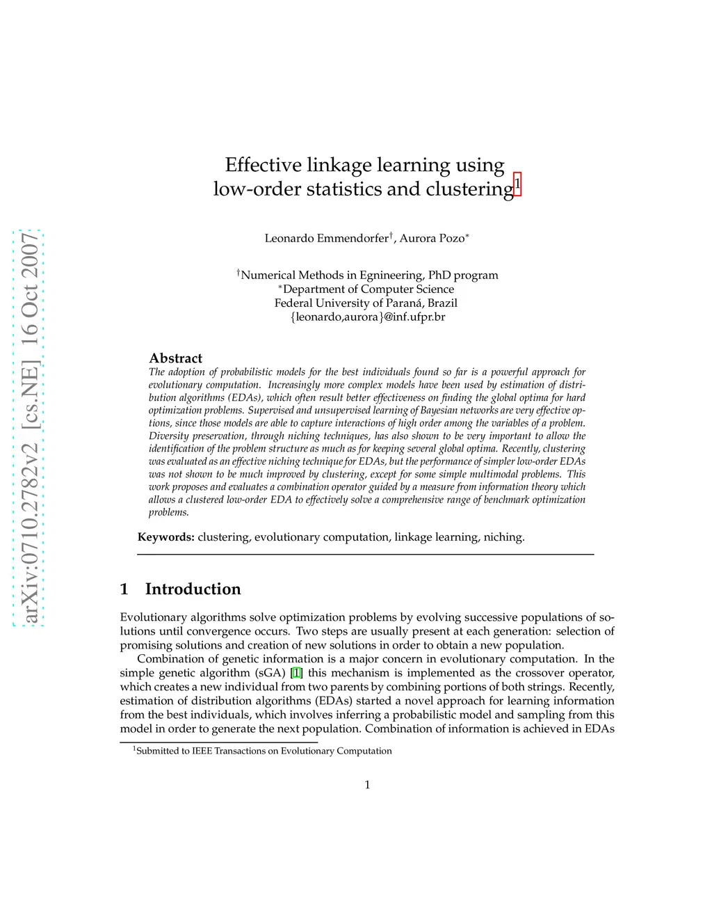 The adoption of probabilistic models for the best individuals found so far is a powerful approach for evolutionary computation. Increasingly more complex models have been used by estimation of distribution algorithms (EDAs), which often result better effectiveness on finding the global optima for hard optimization problems. Supervised and unsupervised learning of Bayesian networks are very effective options, since those models are able to capture interactions of high order among the variables of a problem. Diversity preservation, through niching techniques, has also shown to be very important to allow the identification of the problem structure as much as for keeping several global optima. Recently, clustering was evaluated as an effective niching technique for EDAs, but the performance of simpler low-order EDAs was not shown to be much improved by clustering, except for some simple multimodal problems. This work proposes and evaluates a combination operator guided by a measure from information theory which allows a clustered low-order EDA to effectively solve a comprehensive range of benchmark optimization problems.