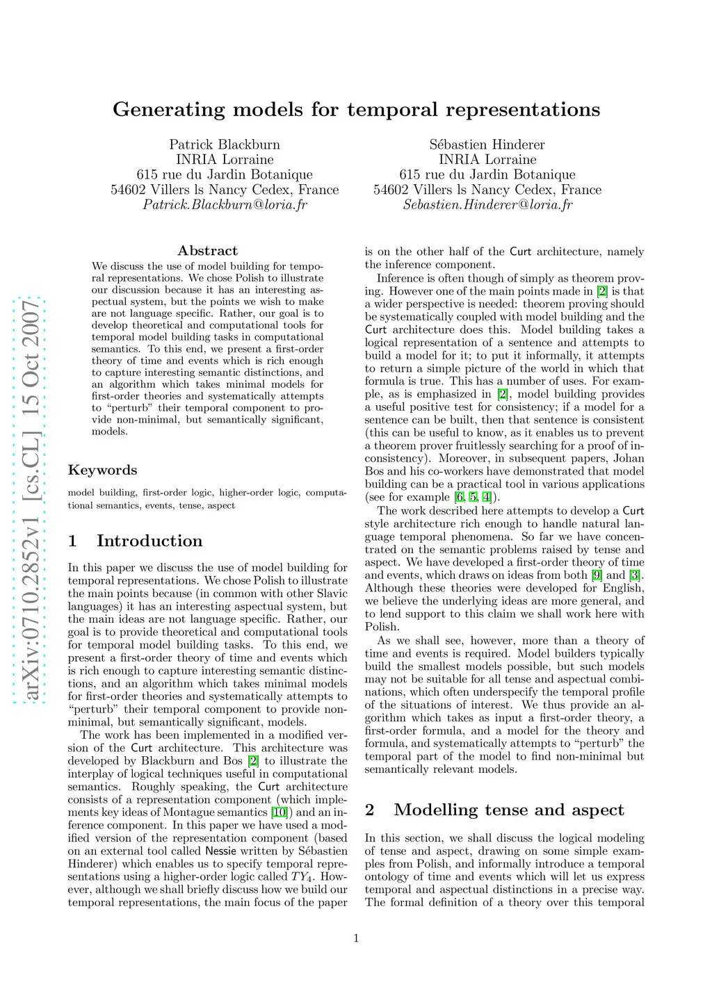 We discuss the use of model building for temporal representations. We chose Polish to illustrate our discussion because it has an interesting aspectual system, but the points we wish to make are not language specific. Rather, our goal is to develop theoretical and computational tools for temporal model building tasks in computational semantics. To this end, we present a first-order theory of time and events which is rich enough to capture interesting semantic distinctions, and an algorithm which takes minimal models for first-order theories and systematically attempts to ``perturb'' their temporal component to provide non-minimal, but semantically significant, models.