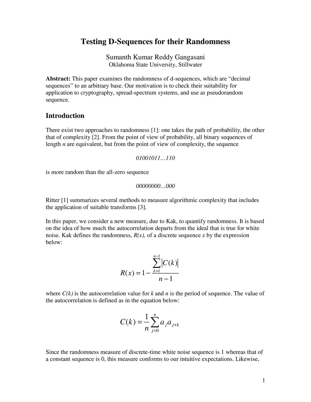Testing D-Sequences for their Randomness