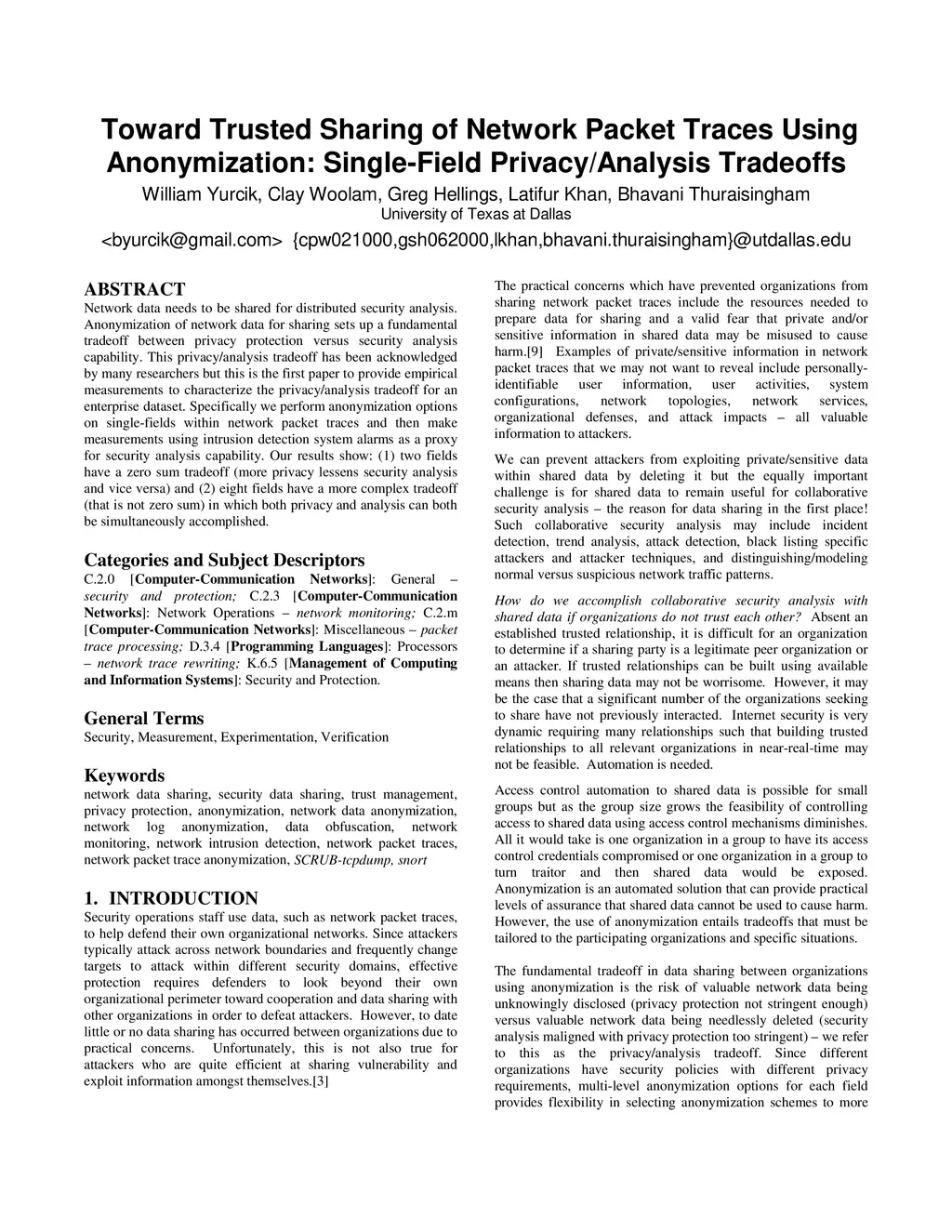 Toward Trusted Sharing of Network Packet Traces Using Anonymization: