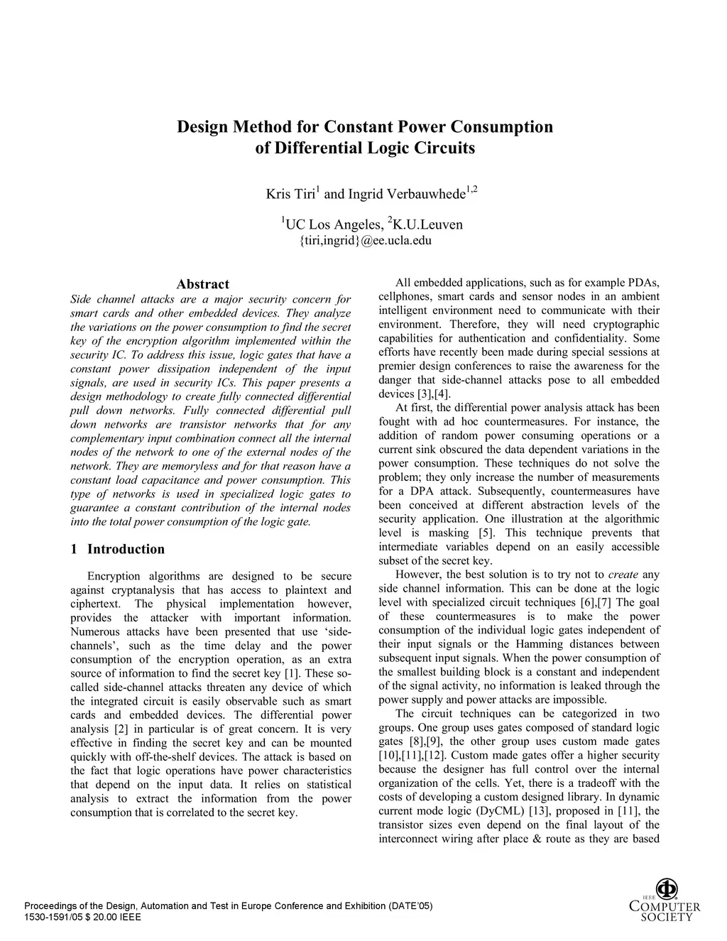 Side channel attacks are a major security concern for smart cards and other embedded devices. They analyze the variations on the power consumption to find the secret key of the encryption algorithm implemented within the security IC. To address this issue, logic gates that have a constant power dissipation independent of the input signals, are used in security ICs. This paper presents a design methodology to create fully connected differential pull down networks. Fully connected differential pull down networks are transistor networks that for any complementary input combination connect all the internal nodes of the network to one of the external nodes of the network. They are memoryless and for that reason have a constant load capacitance and power consumption. This type of networks is used in specialized logic gates to guarantee a constant contribution of the internal nodes into the total power consumption of the logic gate.