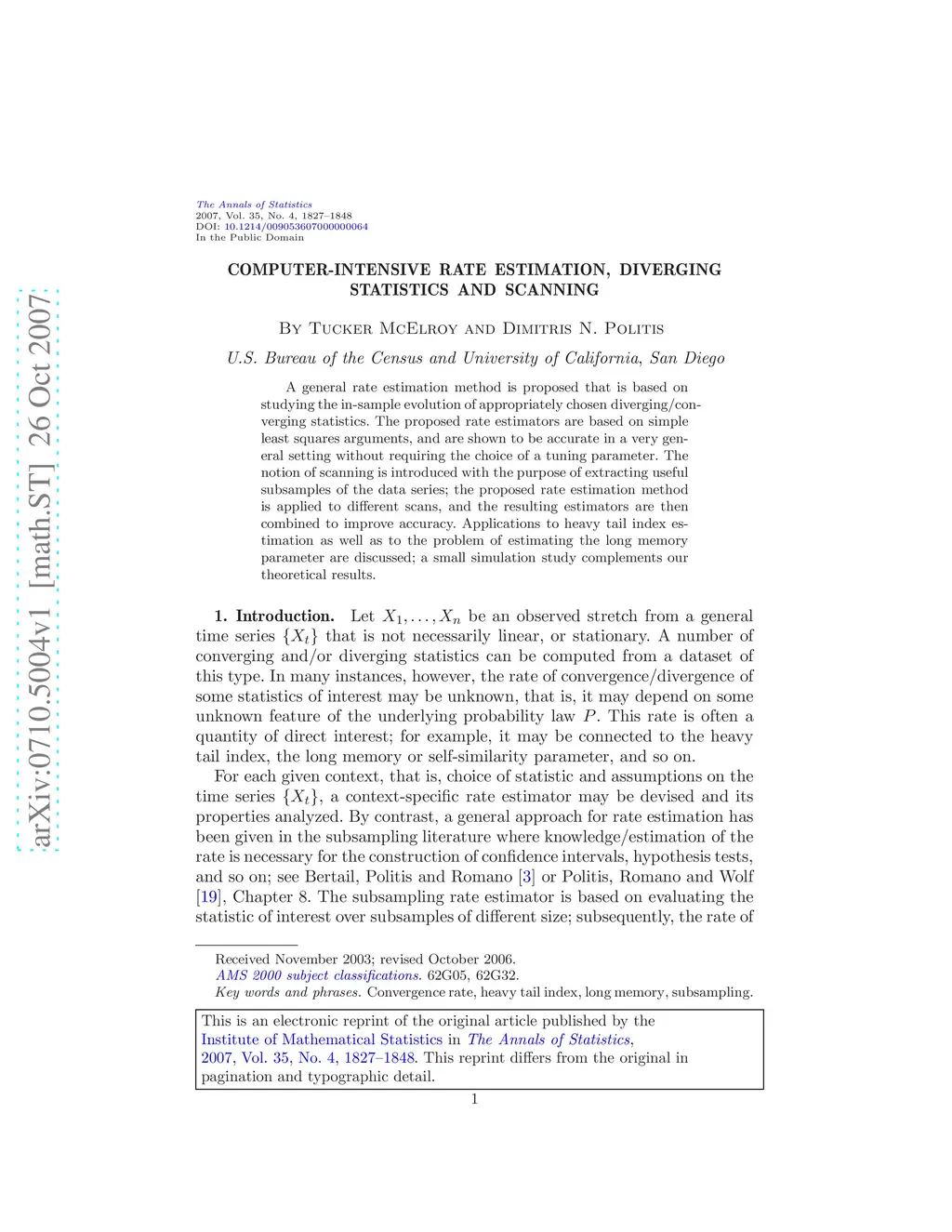 A general rate estimation method is proposed that is based on studying the in-sample evolution of appropriately chosen diverging/converging statistics. The proposed rate estimators are based on simple least squares arguments, and are shown to be accurate in a very general setting without requiring the choice of a tuning parameter. The notion of scanning is introduced with the purpose of extracting useful subsamples of the data series; the proposed rate estimation method is applied to different scans, and the resulting estimators are then combined to improve accuracy. Applications to heavy tail index estimation as well as to the problem of estimating the long memory parameter are discussed; a small simulation study complements our theoretical results.