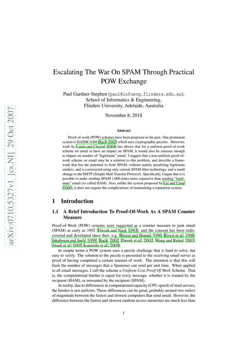 Escalating The War On SPAM Through Practical POW Exchange