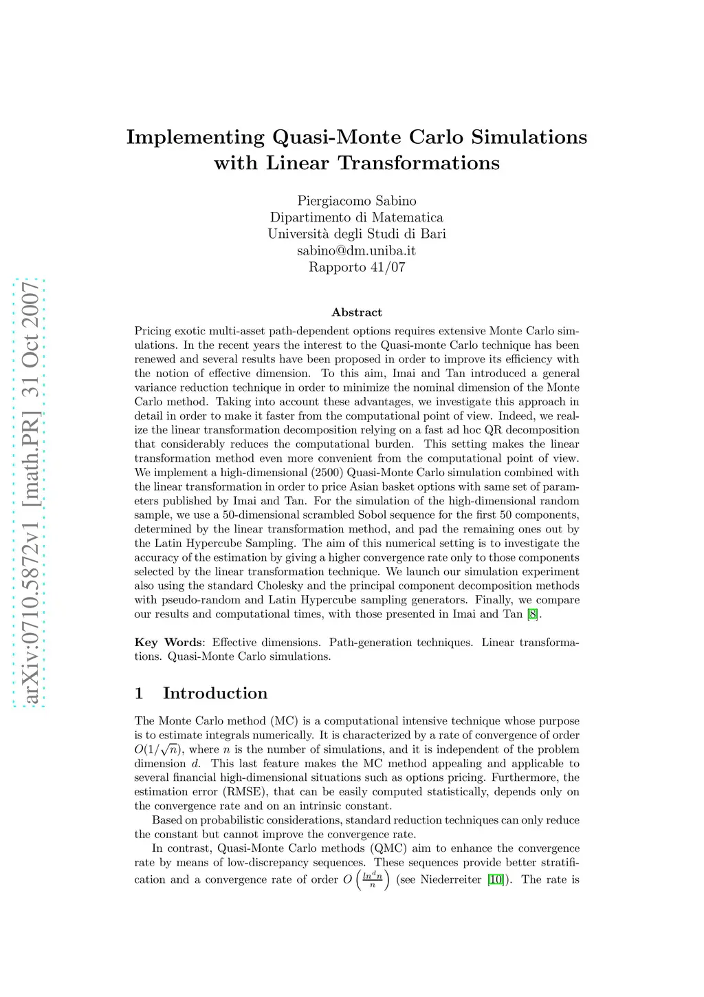 Pricing exotic multi-asset path-dependent options requires extensive Monte Carlo simulations. In the recent years the interest to the Quasi-monte Carlo technique has been renewed and several results have been proposed in order to improve its efficiency with the notion of effective dimension. To this aim, Imai and Tan introduced a general variance reduction technique in order to minimize the nominal dimension of the Monte Carlo method. Taking into account these advantages, we investigate this approach in detail in order to make it faster from the computational point of view. Indeed, we realize the linear transformation decomposition relying on a fast ad hoc QR decomposition that considerably reduces the computational burden. This setting makes the linear transformation method even more convenient from the computational point of view. We implement a high-dimensional (2500) Quasi-Monte Carlo simulation combined with the linear transformation in order to price Asian basket options with same set of parameters published by Imai and Tan. For the simulation of the high-dimensional random sample, we use a 50-dimensional scrambled Sobol sequence for the first 50 components, determined by the linear transformation method, and pad the remaining ones out by the Latin Hypercube Sampling. The aim of this numerical setting is to investigate the accuracy of the estimation by giving a higher convergence rate only to those components selected by the linear transformation technique. We launch our simulation experiment also using the standard Cholesky and the principal component decomposition methods with pseudo-random and Latin Hypercube sampling generators. Finally, we compare our results and computational times, with those presented in Imai and Tan.
