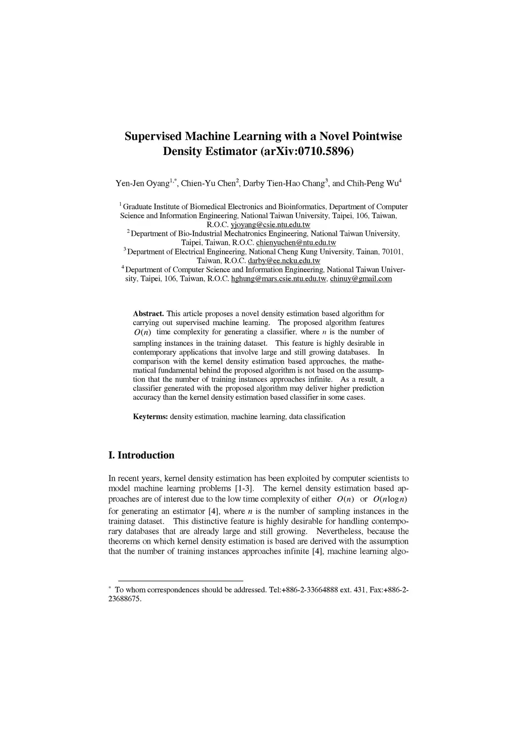 Supervised Machine Learning with a Novel Pointwise Density Estimator