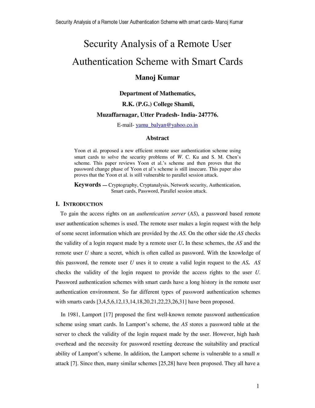 Security Analysis of a Remote User Authentication Scheme with Smart