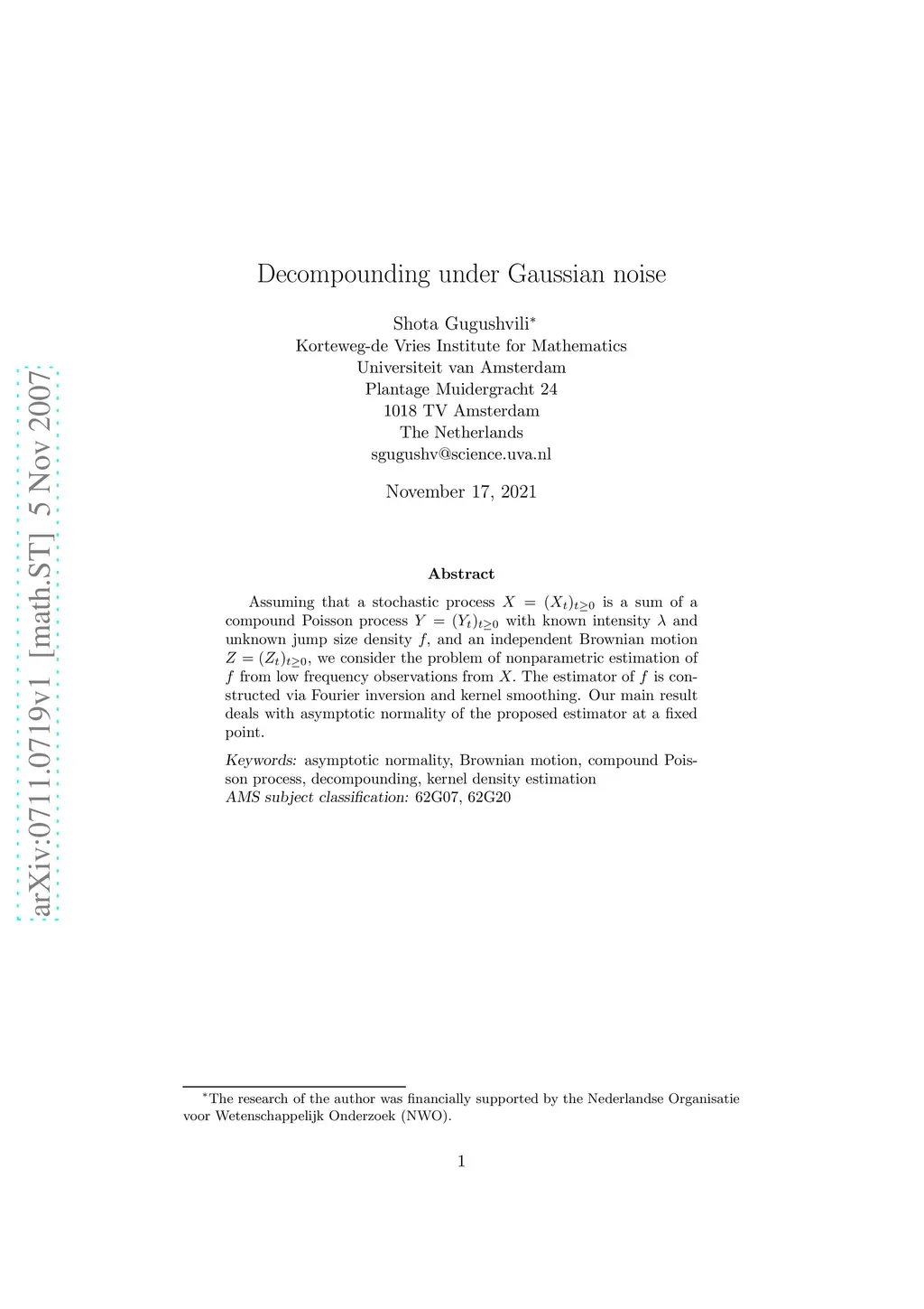 Assuming that a stochastic process is a sum of a compound Poisson process with known intensity and unknown jump size density and an independent Brownian motion we consider the problem of nonparametric estimation of from low frequency observations from The estimator of is constructed via Fourier inversion and kernel smoothing. Our main result deals with asymptotic normality of the proposed estimator at a fixed point.