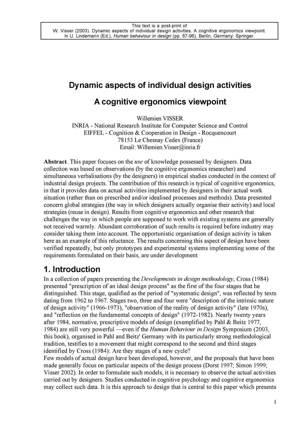 Dynamic aspects of individual design activities. A cognitive ergonomics
