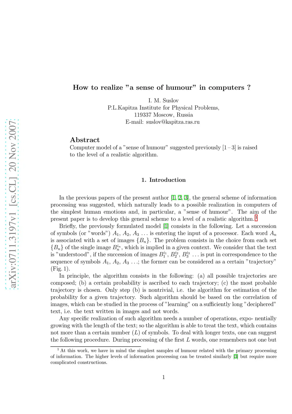 Computer model of a "sense of humour" suggested previously [arXiv:0711.2058, 0711.2061, 0711.2270] is raised to the level of a realistic algorithm.
