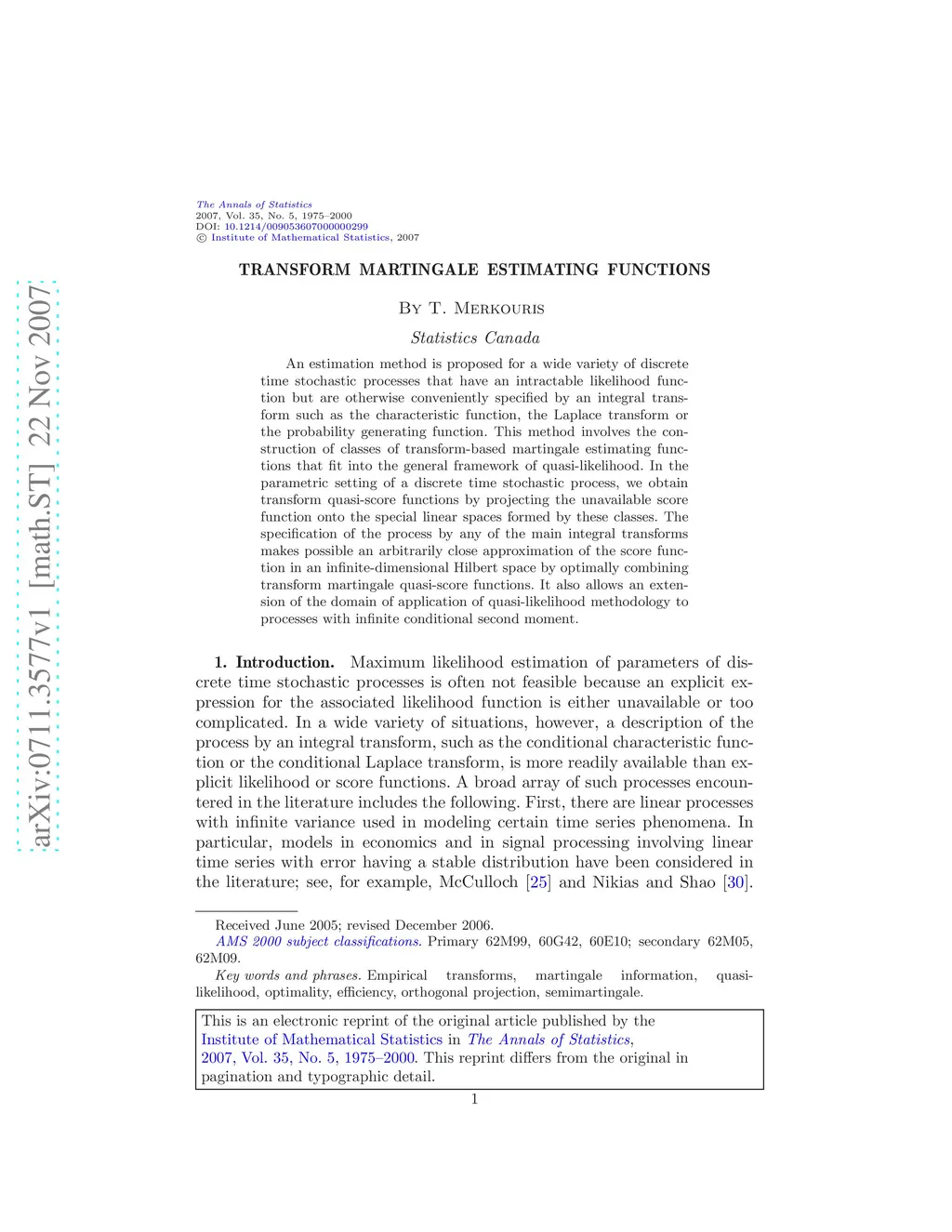 An estimation method is proposed for a wide variety of discrete time stochastic processes that have an intractable likelihood function but are otherwise conveniently specified by an integral transform such as the characteristic function, the Laplace transform or the probability generating function. This method involves the construction of classes of transform-based martingale estimating functions that fit into the general framework of quasi-likelihood. In the parametric setting of a discrete time stochastic process, we obtain transform quasi-score functions by projecting the unavailable score function onto the special linear spaces formed by these classes. The specification of the process by any of the main integral transforms makes possible an arbitrarily close approximation of the score function in an infinite-dimensional Hilbert space by optimally combining transform martingale quasi-score functions. It also allows an extension of the domain of application of quasi-likelihood methodology to processes with infinite conditional second moment.