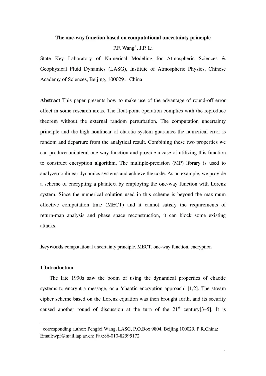 This paper presents how to make use of the advantage of round-off error effect in some research areas. The float-point operation complies with the reproduce theorem without the external random perturbation. The computation uncertainty principle and the high nonlinear of chaotic system guarantee the numerical error is random and departure from the analytical result. Combining these two properties we can produce unilateral one-way function and provide a case of utilizing this function to construct encryption algorithm. The multiple-precision (MP) library is used to analyze nonlinear dynamics systems and achieve the code. As an example, we provide a scheme of encrypting a plaintext by employing the one-way function with Lorenz system. Since the numerical solution used in this scheme is beyond the maximum effective computation time (MECT) and it cannot satisfy the requirements of return-map analysis and phase space reconstruction, it can block some existing attacks.