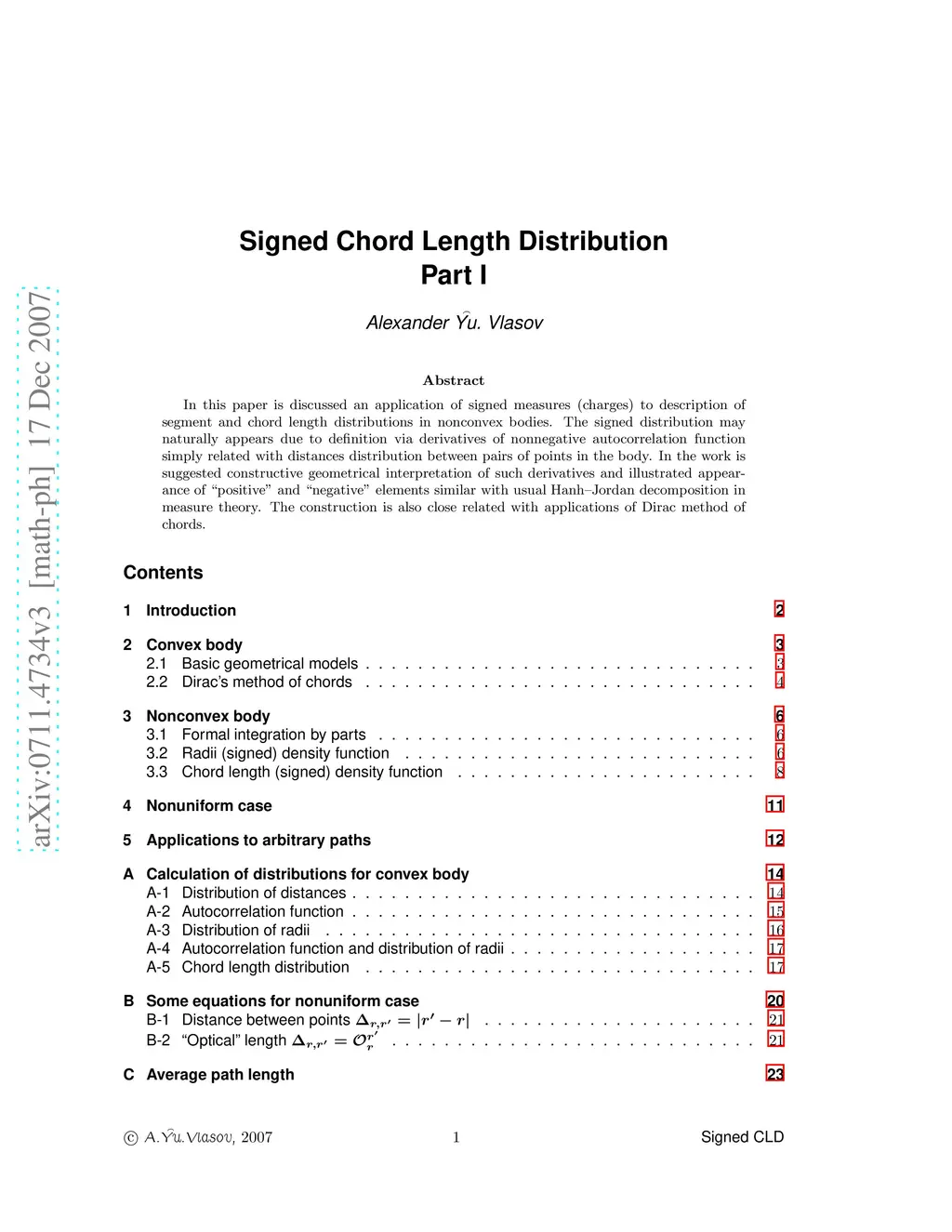 Signed Chord Length Distribution. I