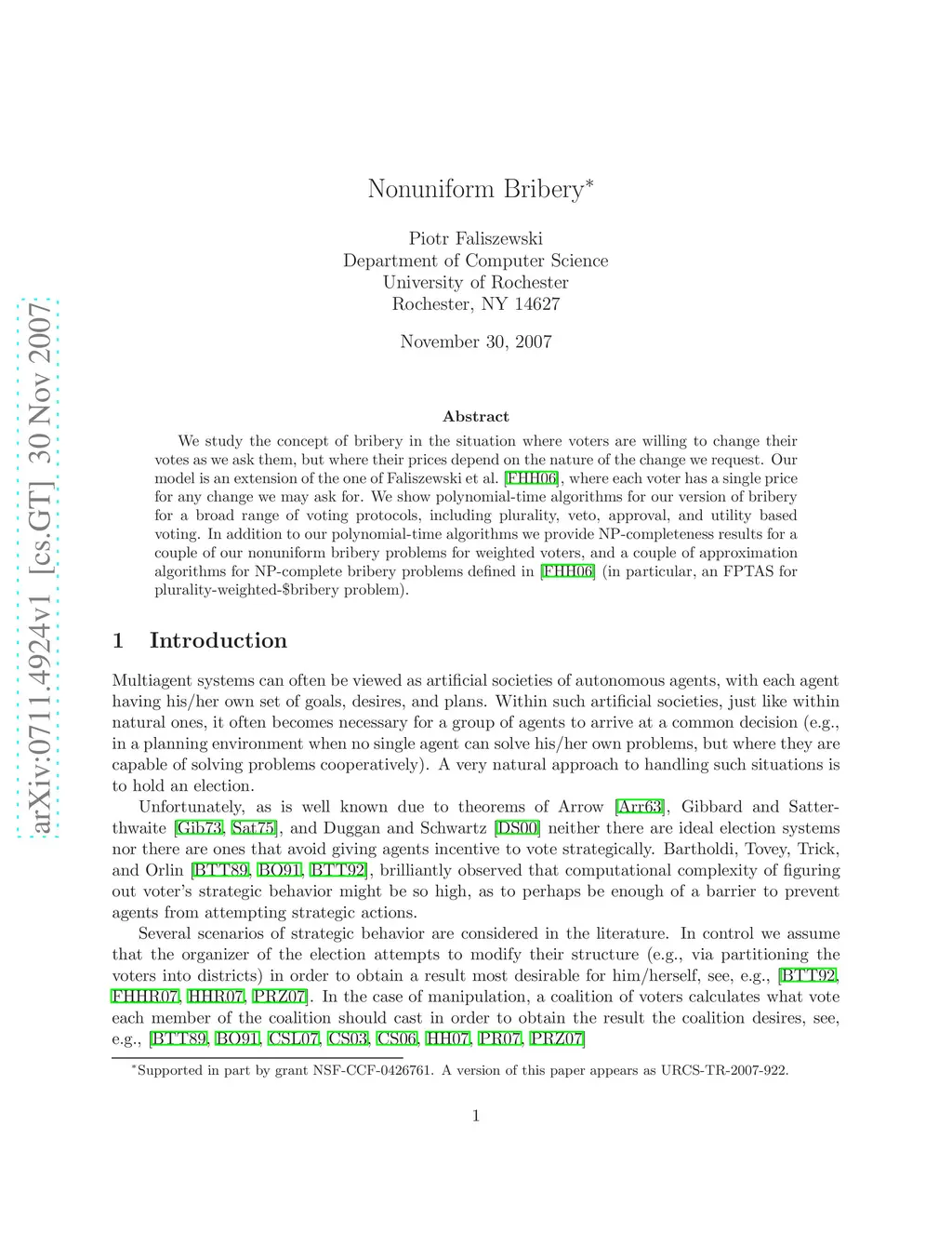 Nonuniform Bribery