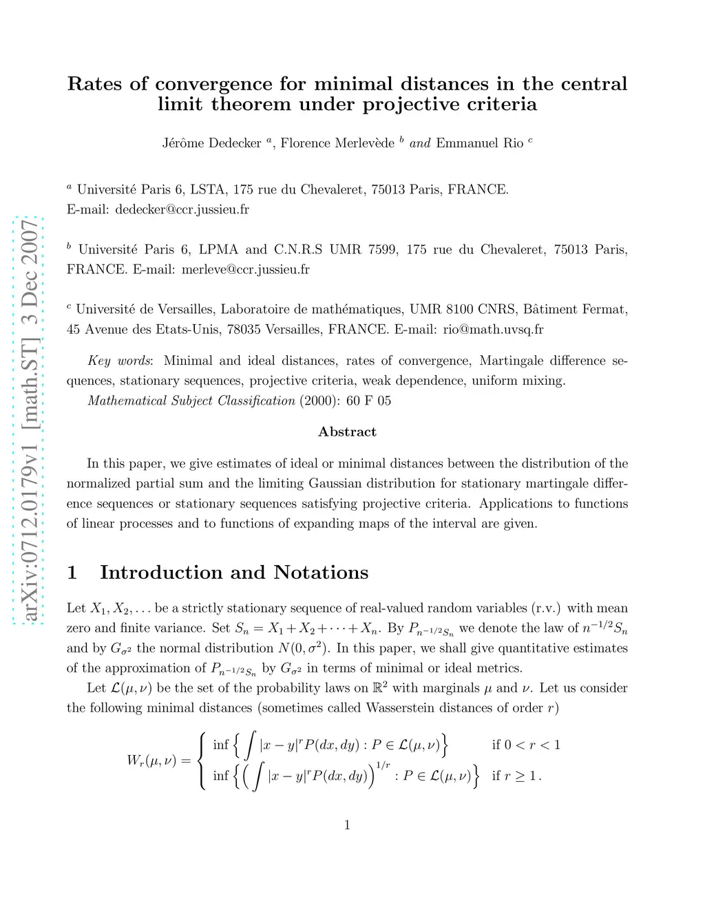 In this paper, we give estimates of ideal or minimal distances between the distribution of the normalized partial sum and the limiting Gaussian distribution for stationary martingale difference sequences or stationary sequences satisfying projective criteria. Applications to functions of linear processes and to functions of expanding maps of the interval are given.
