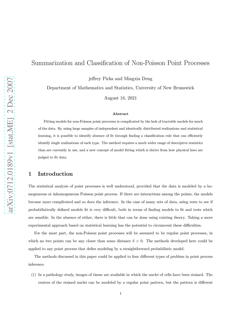 Summarization and Classification of Non-Poisson Point Processes
