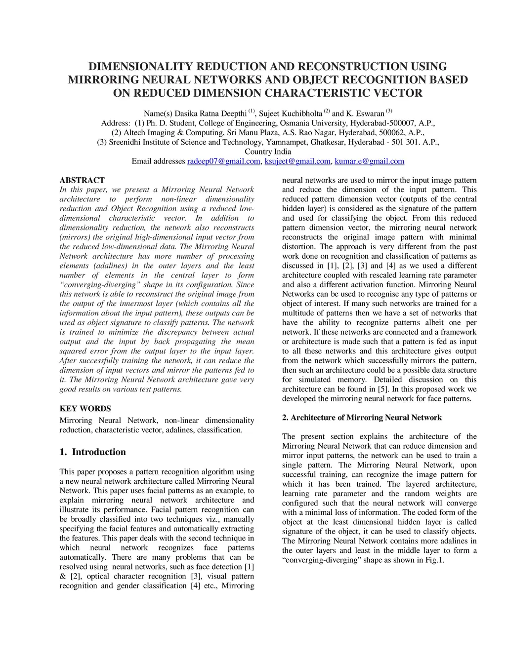 Dimensionality Reduction and Reconstruction using Mirroring Neural