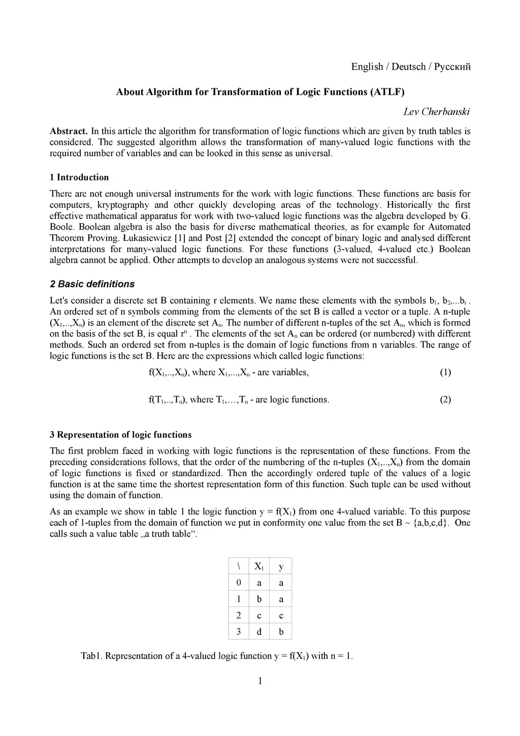 About Algorithm for Transformation of Logic Functions (ATLF)