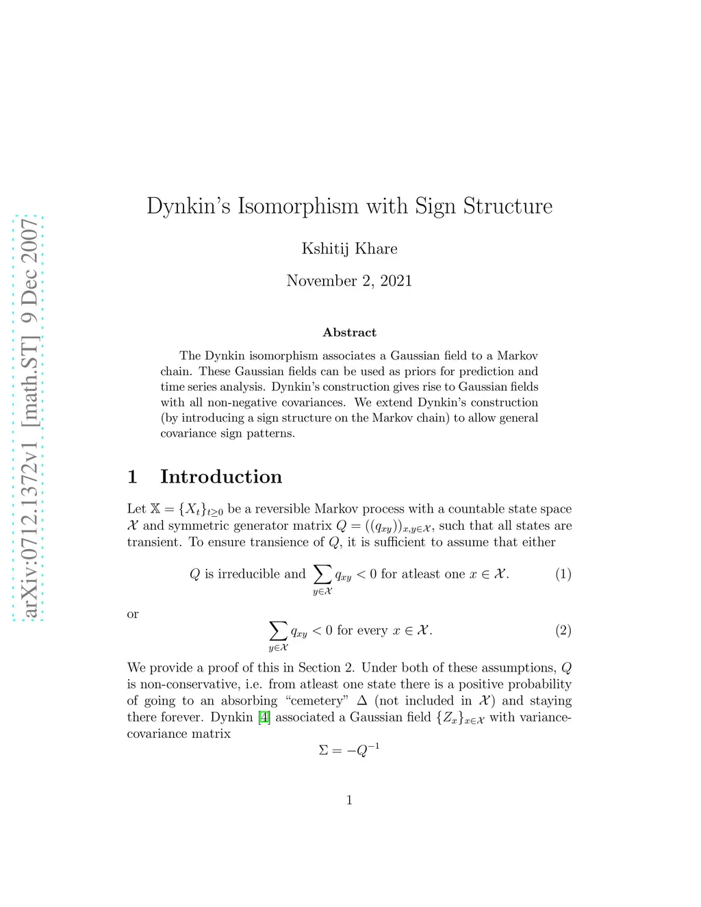The Dynkin isomorphism associates a Gaussian field to a Markov chain. These Gaussian fields can be used as priors for prediction and time series analysis. Dynkin's construction gives Gaussian fields with all non-negative covariances. We extend Dynkin's construction (by introducing a sign structure on the Markov chain) to allow general covariance sign patterns.