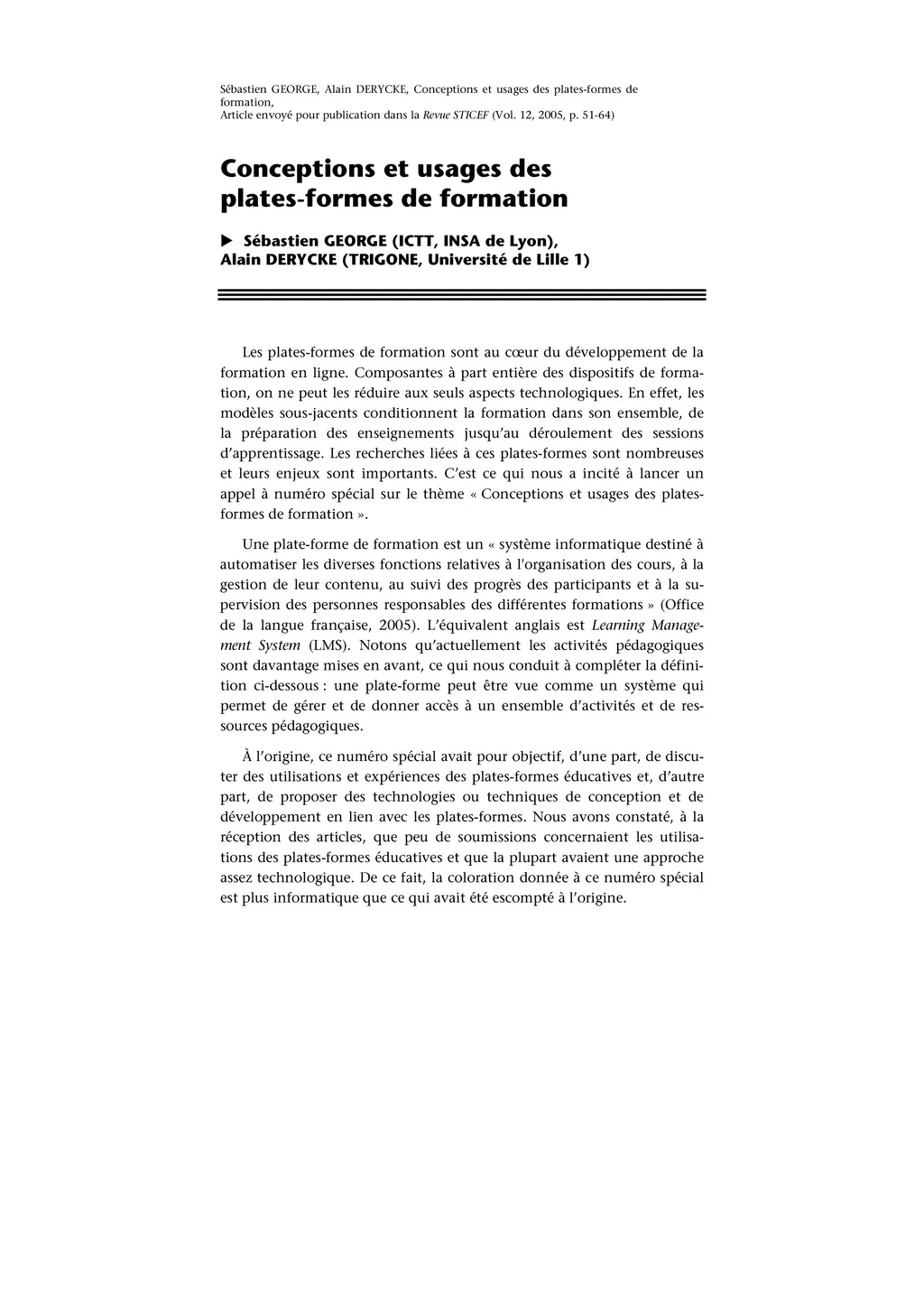 Conceptions et usages des plates-formes de formation, Revue Sciences et