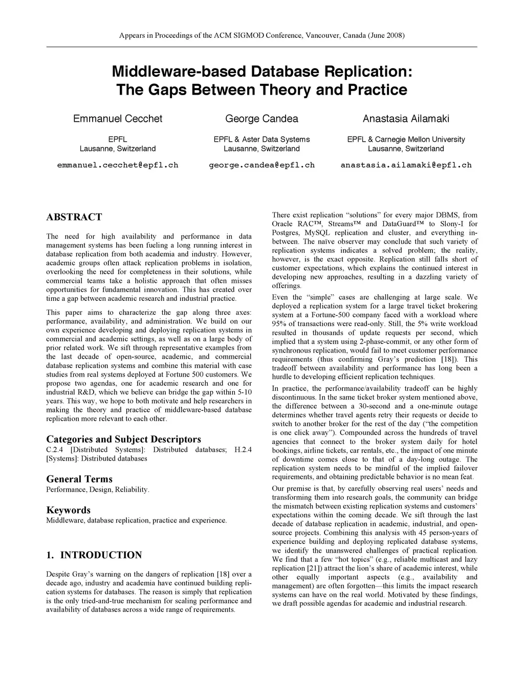 Middleware-based Database Replication: The Gaps between Theory and