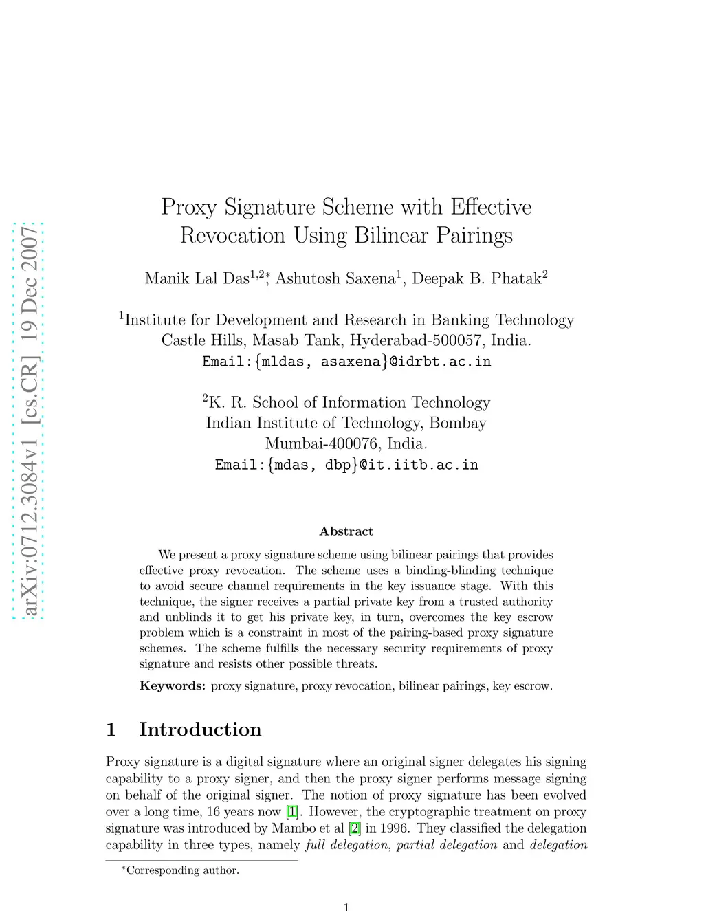 Proxy Signature Scheme with Effective Revocation Using Bilinear Pairings