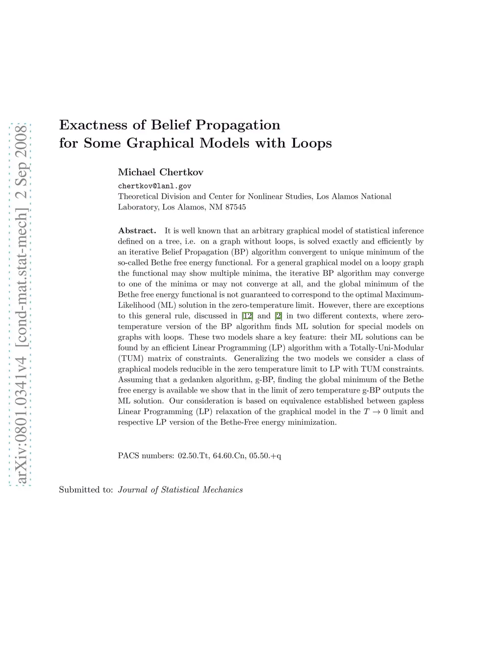 It is well known that an arbitrary graphical model of statistical inference defined on a tree, i.e. on a graph without loops, is solved exactly and efficiently by an iterative Belief Propagation (BP) algorithm convergent to unique minimum of the so-called Bethe free energy functional. For a general graphical model on a loopy graph the functional may show multiple minima, the iterative BP algorithm may converge to one of the minima or may not converge at all, and the global minimum of the Bethe free energy functional is not guaranteed to correspond to the optimal Maximum-Likelihood (ML) solution in the zero-temperature limit. However, there are exceptions to this general rule, discussed in \cite{05KW} and \cite{08BSS} in two different contexts, where zero-temperature version of the BP algorithm finds ML solution for special models on graphs with loops. These two models share a key feature: their ML solutions can be found by an efficient Linear Programming (LP) algorithm with a Totally-Uni-Modular (TUM) matrix of constraints. Generalizing the two models we consider a class of graphical models reducible in the zero temperature limit to LP with TUM constraints. Assuming that a gedanken algorithm, g-BP, funding the global minimum of the Bethe free energy is available we show that in the limit of zero temperature g-BP outputs the ML solution. Our consideration is based on equivalence established between gapless Linear Programming (LP) relaxation of the graphical model in the limit and respective LP version of the Bethe-Free energy minimization.