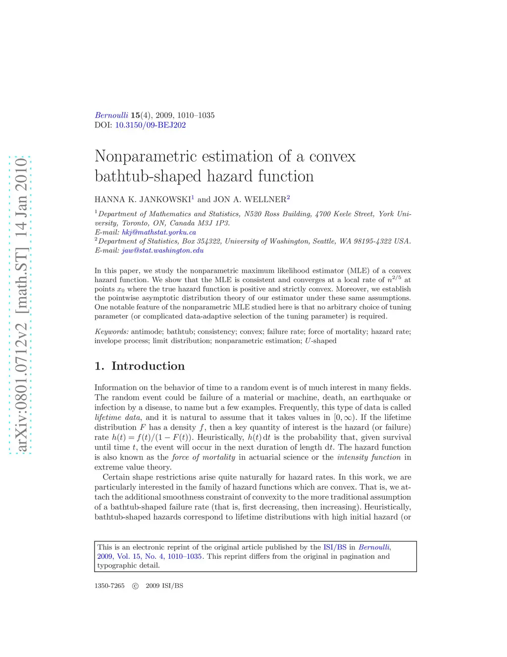 Nonparametric estimation of a convex bathtub-shaped hazard function