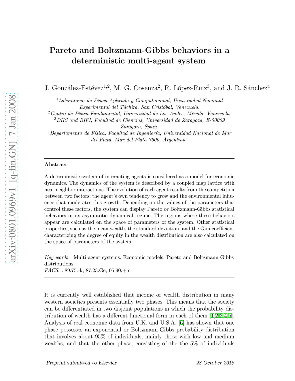 Pareto and Boltzmann-Gibbs behaviors in a deterministic multi-agent