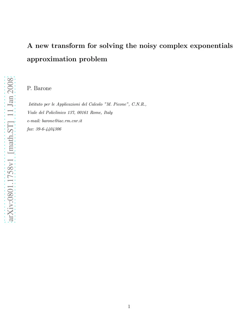 The problem of estimating a complex measure made up by a linear combination of Dirac distributions centered on points of the complex plane from a finite number of its complex moments affected by additive i.i.d. Gaussian noise is considered. A random measure is defined whose expectation approximates the unknown measure under suitable conditions. An estimator of the approximating measure is then proposed as well as a new discrete transform of the noisy moments that allows to compute an estimate of the unknown measure. A small simulation study is also performed to experimentally check the goodness of the approximations.