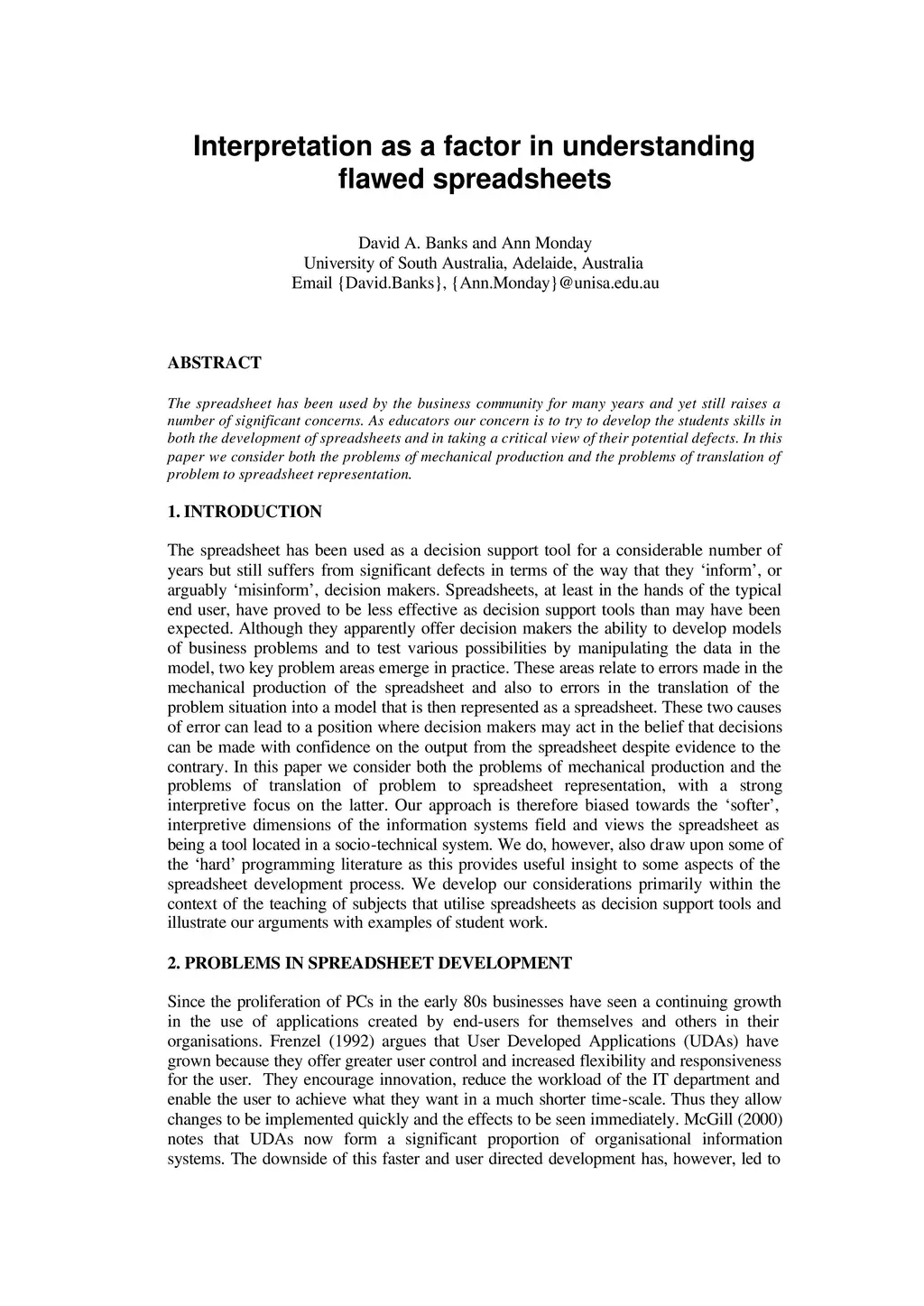 Interpretation as a factor in understanding flawed spreadsheets
