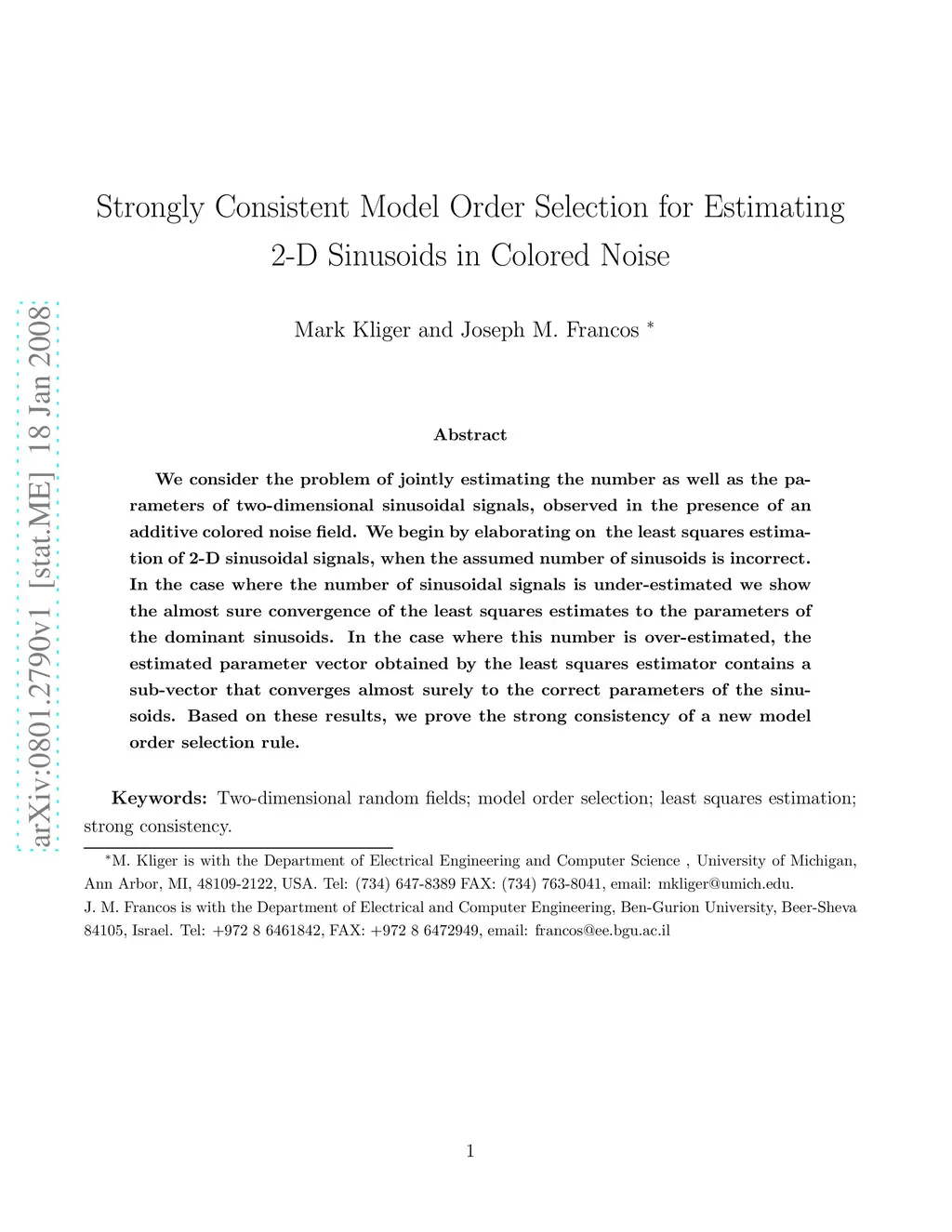 We consider the problem of jointly estimating the number as well as the parameters of two-dimensional sinusoidal signals, observed in the presence of an additive colored noise field. We begin by elaborating on the least squares estimation of 2-D sinusoidal signals, when the assumed number of sinusoids is incorrect. In the case where the number of sinusoidal signals is under-estimated we show the almost sure convergence of the least squares estimates to the parameters of the dominant sinusoids. In the case where this number is over-estimated, the estimated parameter vector obtained by the least squares estimator contains a sub-vector that converges almost surely to the correct parameters of the sinusoids. Based on these results, we prove the strong consistency of a new model order selection rule.