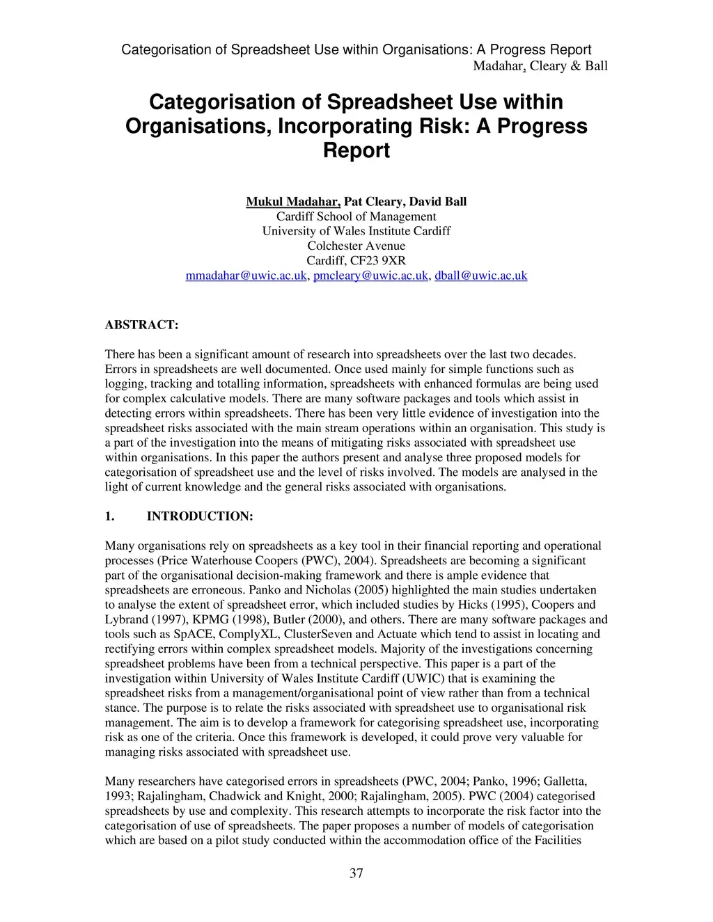 Categorisation of Spreadsheet Use within Organisations, Incorporating