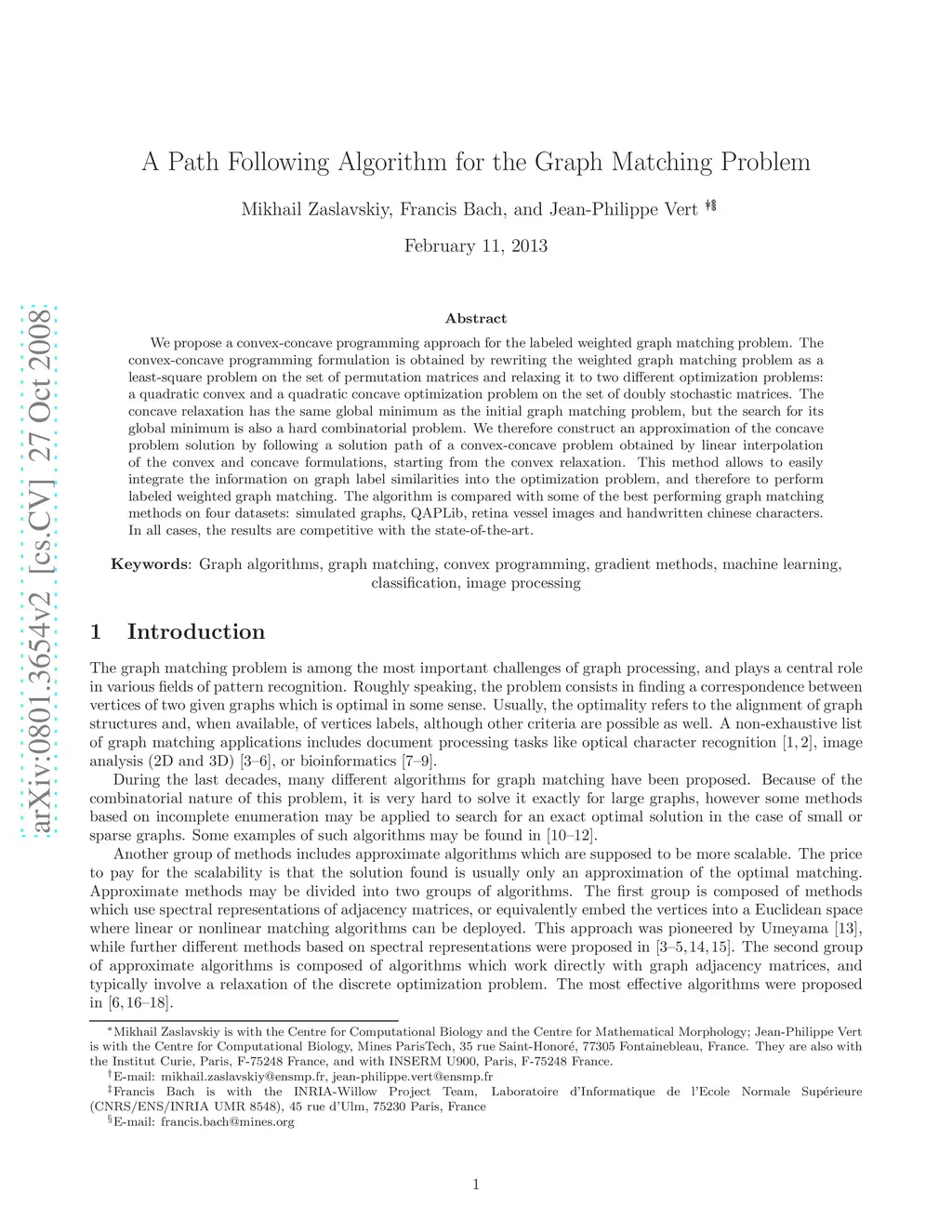 We propose a convex-concave programming approach for the labeled weighted graph matching problem. The convex-concave programming formulation is obtained by rewriting the weighted graph matching problem as a least-square problem on the set of permutation matrices and relaxing it to two different optimization problems: a quadratic convex and a quadratic concave optimization problem on the set of doubly stochastic matrices. The concave relaxation has the same global minimum as the initial graph matching problem, but the search for its global minimum is also a hard combinatorial problem. We therefore construct an approximation of the concave problem solution by following a solution path of a convex-concave problem obtained by linear interpolation of the convex and concave formulations, starting from the convex relaxation. This method allows to easily integrate the information on graph label similarities into the optimization problem, and therefore to perform labeled weighted graph matching. The algorithm is compared with some of the best performing graph matching methods on four datasets: simulated graphs, QAPLib, retina vessel images and handwritten chinese characters. In all cases, the results are competitive with the state-of-the-art.