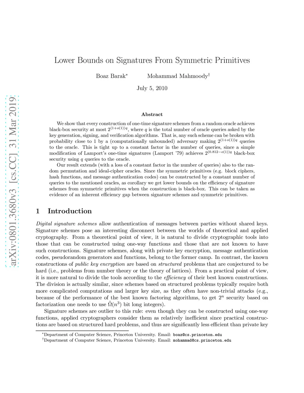 Lower Bounds on Signatures from Symmetric Primitives