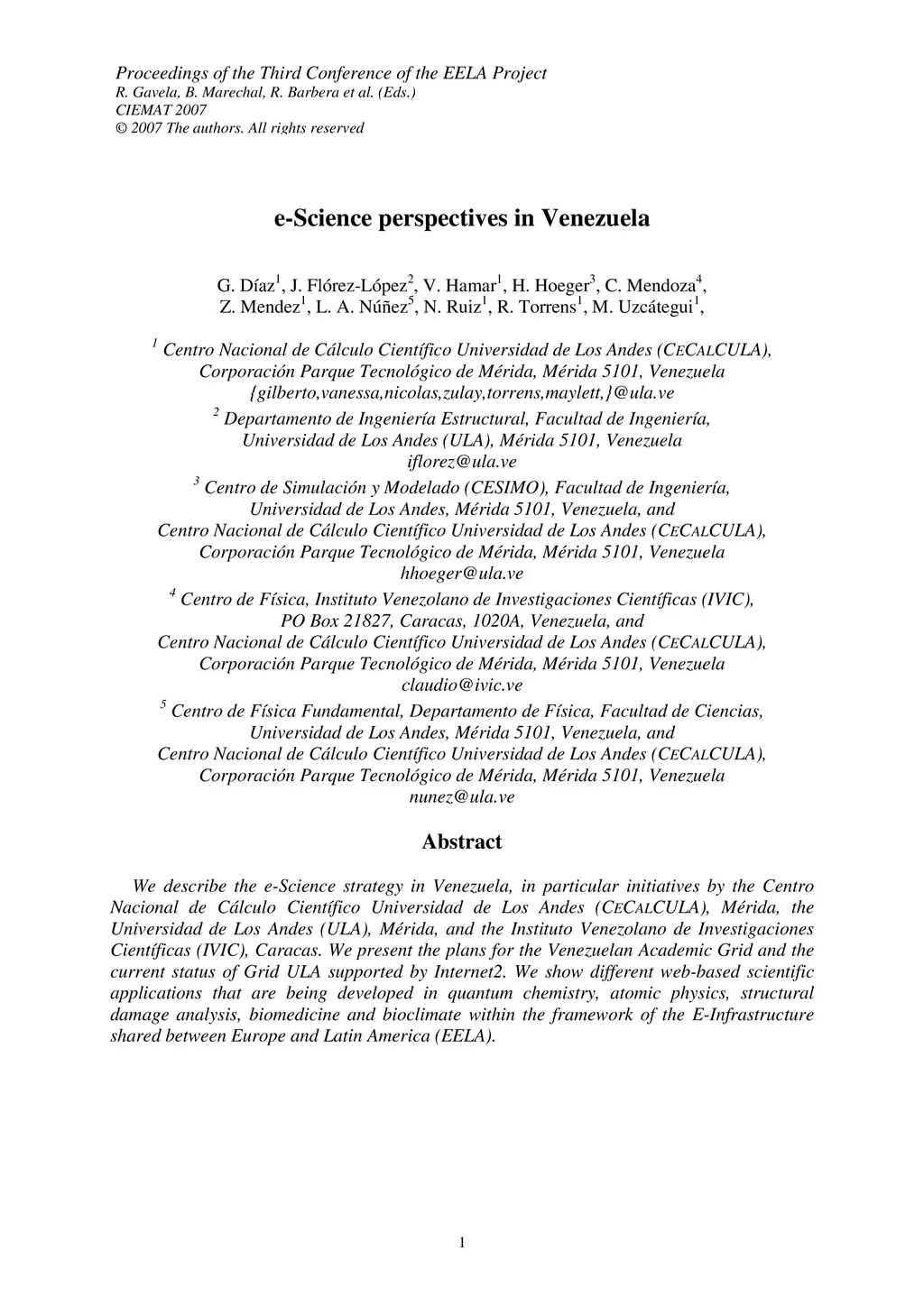 We describe the e-Science strategy in Venezuela, in particular initiatives by the Centro Nacional de Calculo Cientifico Universidad de Los Andes (CECALCULA), Merida, the Universidad de Los Andes (ULA), Merida, and the Instituto Venezolano de Investigaciones Cientificas (IVIC), Caracas. We present the plans for the Venezuelan Academic Grid and the current status of Grid ULA supported by Internet2. We show different web-based scientific applications that are being developed in quantum chemistry, atomic physics, structural damage analysis, biomedicine and bioclimate within the framework of the E-Infrastructure shared between Europe and Latin America (EELA)
