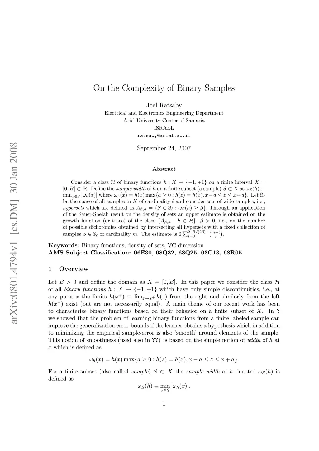 On the Complexity of Binary Samples
