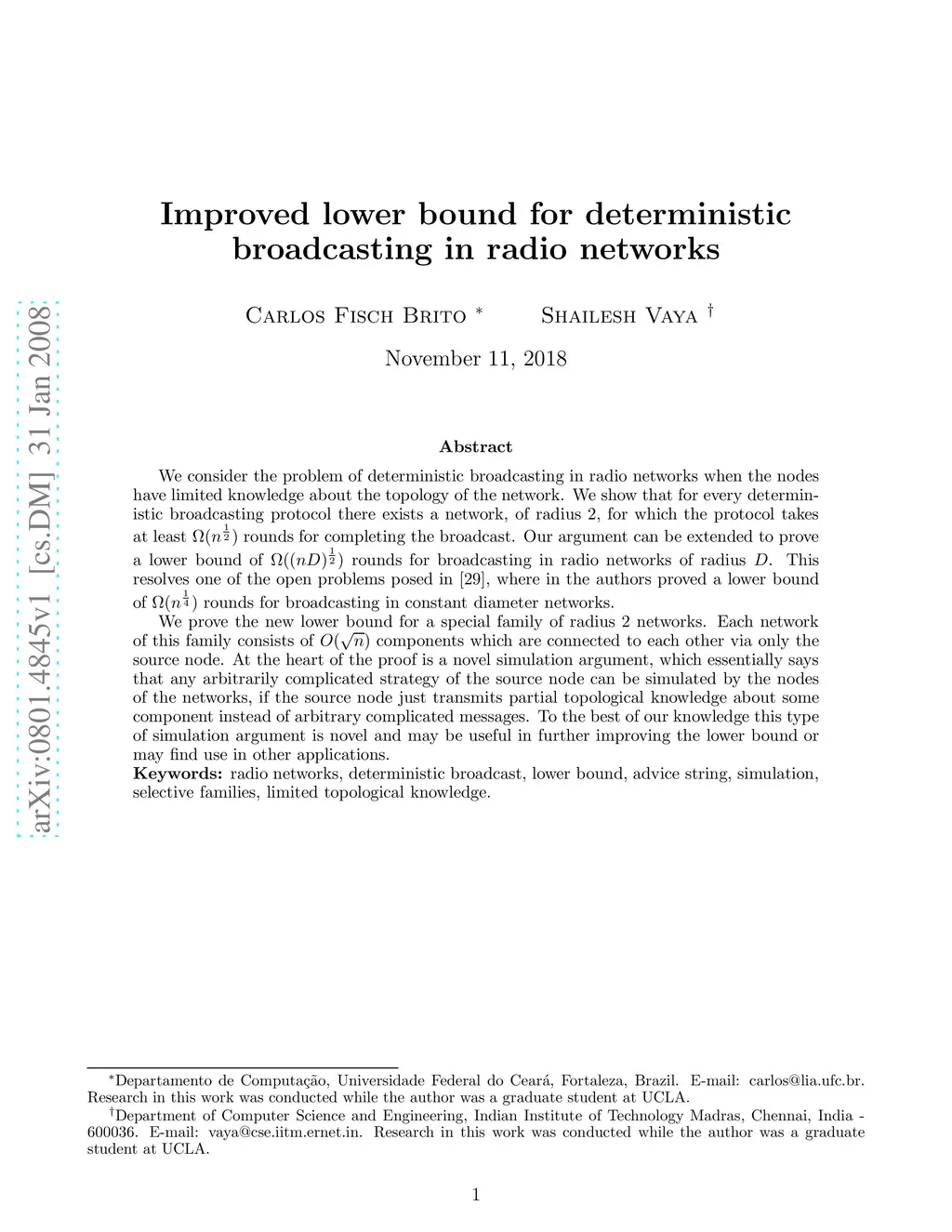 We consider the problem of deterministic broadcasting in radio networks when the nodes have limited knowledge about the topology of the network. We show that for every deterministic broadcasting protocol there exists a network, of radius 2, for which the protocol takes at least $\Omega(\sqrt{n}) rounds for completing the broadcast. Our argument can be extended to prove a lower bound of Omega(\sqrt{nD}) rounds for broadcasting in radio networks of radius D. This resolves one of the open problems posed in [29], where in the authors proved a lower bound of $\Omega(n^{1/4}) rounds for broadcasting in constant diameter networks. We prove the new lower bound for a special family of radius 2 networks. Each network of this family consists of O(\sqrt{n}) components which are connected to each other via only the source node. At the heart of the proof is a novel simulation argument, which essentially says that any arbitrarily complicated strategy of the source node can be simulated by the nodes of the networks, if the source node just transmits partial topological knowledge about some component instead of arbitrary complicated messages. To the best of our knowledge this type of simulation argument is novel and may be useful in further improving the lower bound or may find use in other applications. Keywords: radio networks, deterministic broadcast, lower bound, advice string, simulation, selective families, limited topological knowledge.