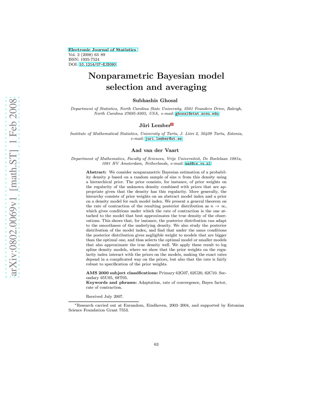 Nonparametric Bayesian model selection and averaging