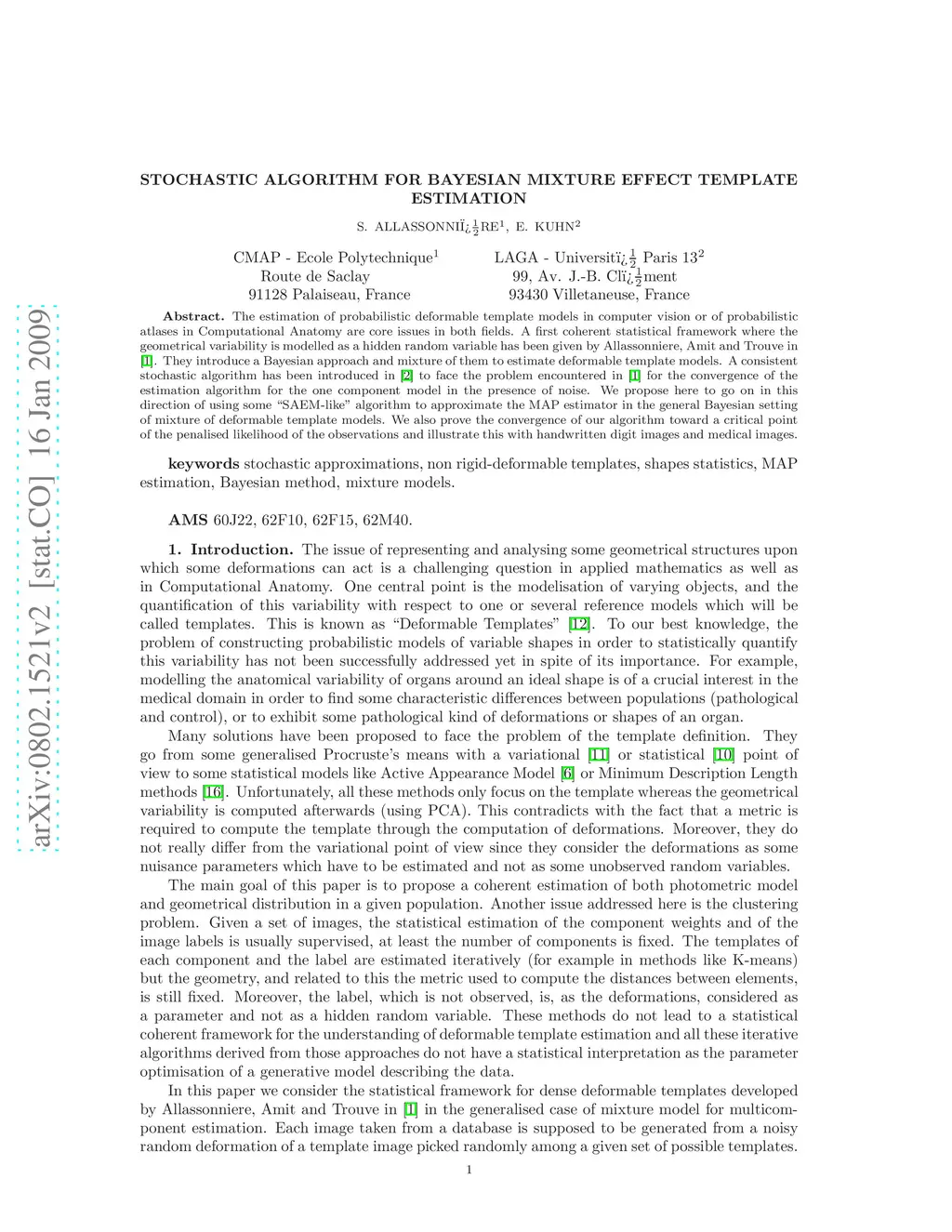 Stochastic Algorithm For Parameter Estimation For Dense Deformable