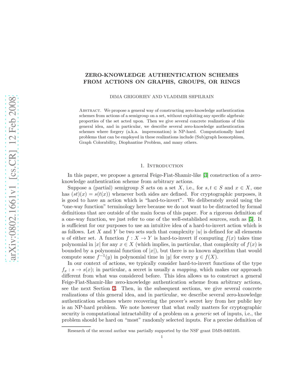 Zero-knowledge authentication schemes from actions on graphs, groups, or