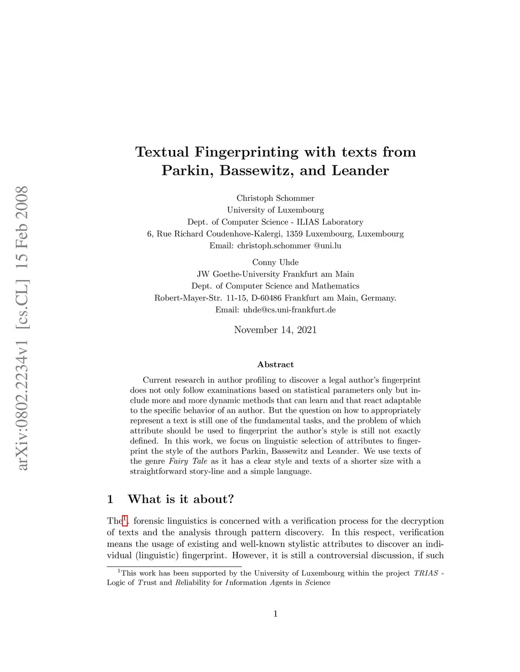 Textual Fingerprinting with Texts from Parkin, Bassewitz, and Leander