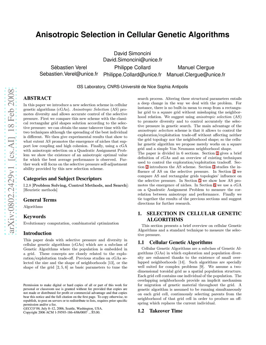 In this paper we introduce a new selection scheme in cellular genetic algorithms (cGAs). Anisotropic Selection (AS) promotes diversity and allows accurate control of the selective pressure. First we compare this new scheme with the classical rectangular grid shapes solution according to the selective pressure: we can obtain the same takeover time with the two techniques although the spreading of the best individual is different. We then give experimental results that show to what extent AS promotes the emergence of niches that support low coupling and high cohesion. Finally, using a cGA with anisotropic selection on a Quadratic Assignment Problem we show the existence of an anisotropic optimal value for which the best average performance is observed. Further work will focus on the selective pressure self-adjustment ability provided by this new selection scheme.