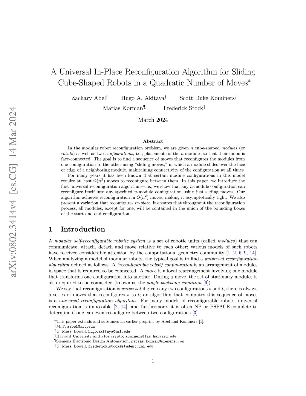 In the modular robot reconfiguration problem, we are given cube-shaped modules (or robots) as well as two configurations, i.e., placements of the modules so that their union is face-connected. The goal is to find a sequence of moves that reconfigures the modules from one configuration to the other using "sliding moves," in which a module slides over the face or edge of a neighboring module, maintaining connectivity of the configuration at all times. For many years it has been known that certain module configurations in this model require at least moves to reconfigure between them. In this paper, we introduce the first universal reconfiguration algorithm -- i.e., we show that any -module configuration can reconfigure itself into any specified -module configuration using just sliding moves. Our algorithm achieves reconfiguration in moves, making it asymptotically tight. We also present a variation that reconfigures in-place, it ensures that throughout the reconfiguration process, all modules, except for one, will be contained in the union of the bounding boxes of the start and end configuration.