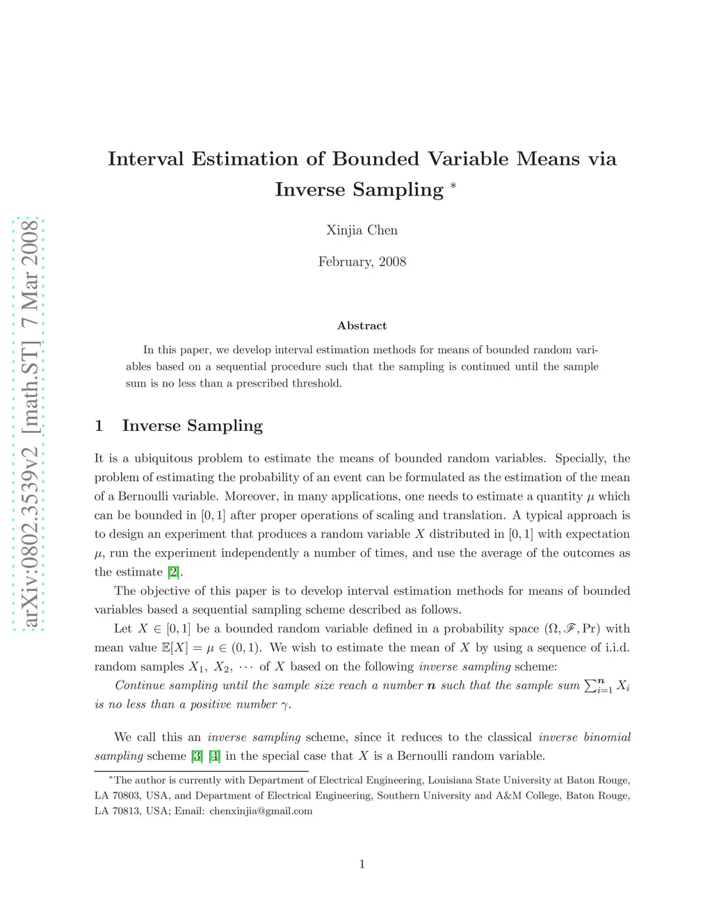 Interval Estimation of Bounded Variable Means via Inverse Sampling
