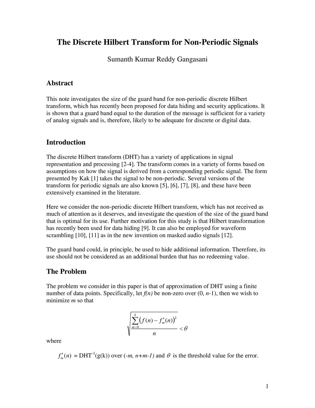 The Discrete Hilbert Transform for Non-Periodic Signals