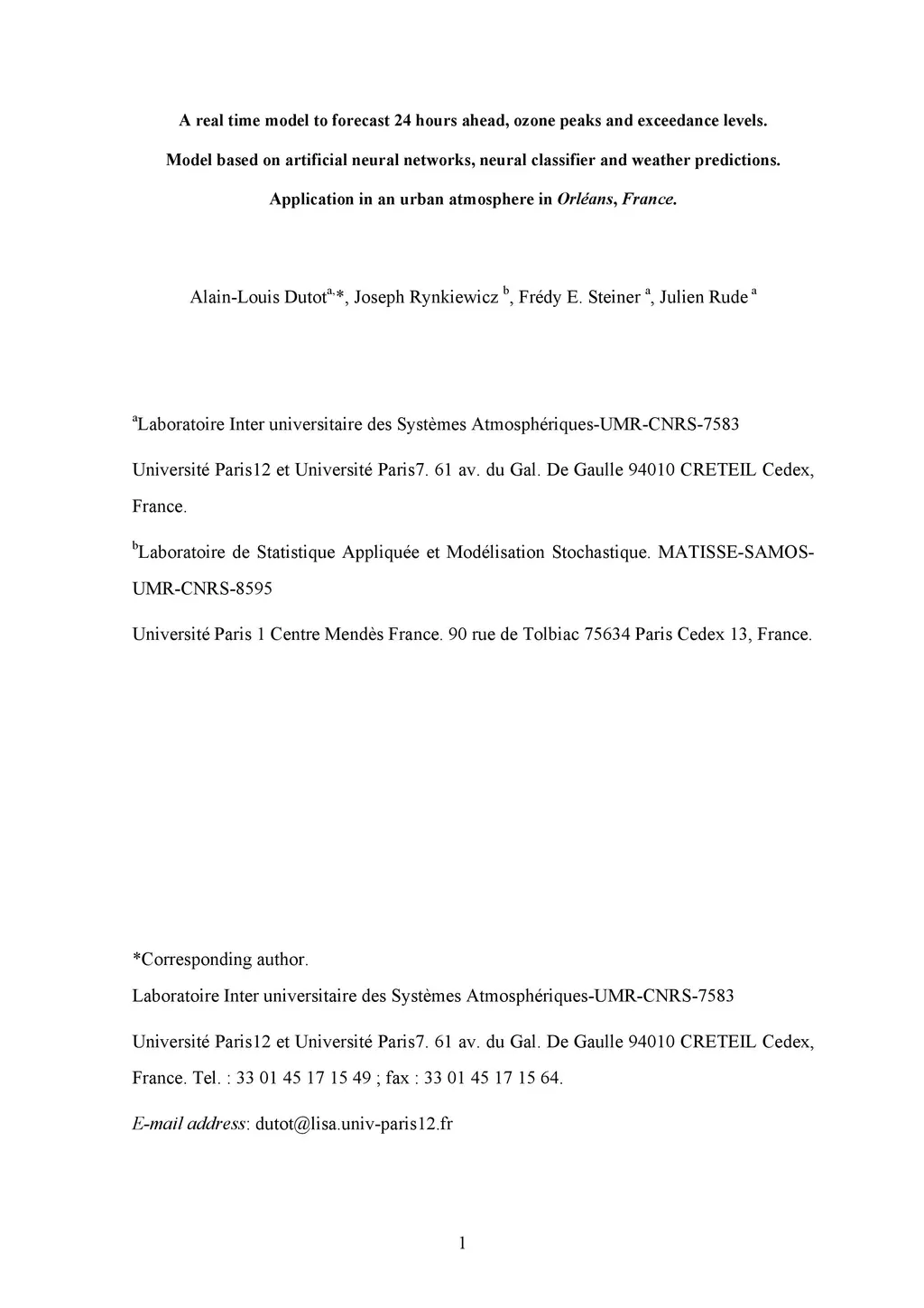 A 24-h forecast of ozone peaks and exceedance levels using neural